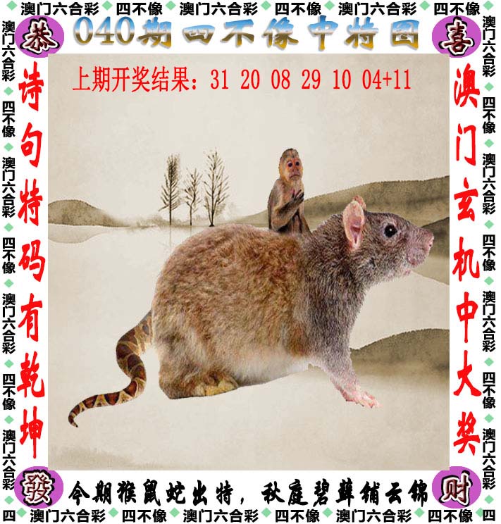 第040期:澳门六合彩主打▲五肖十码中特▲三字解平特肖!